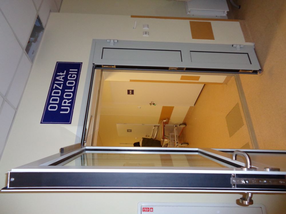 Wejście na Oddział Urologiczny, nad drzwiami tabliczka z nazwą Oddziału