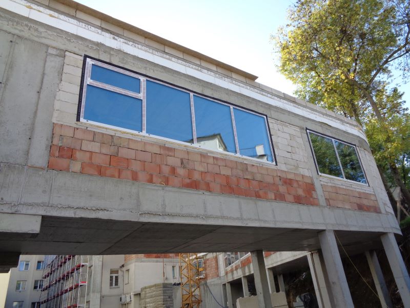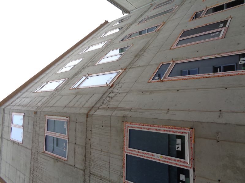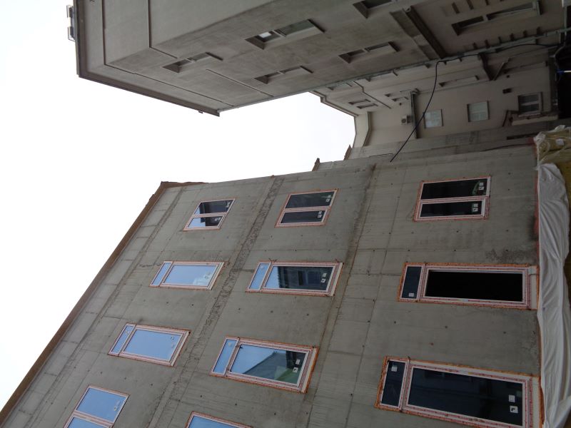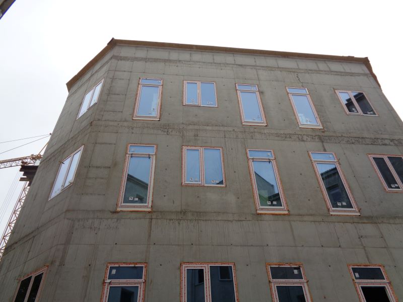 Widok na budynek i stolarkę okienną.