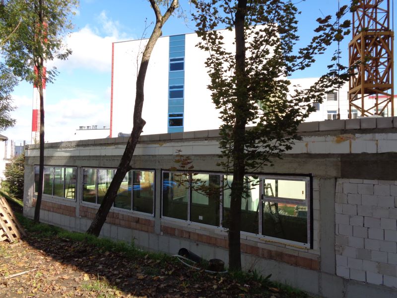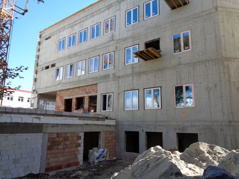 Zakończono roboty ziemne. Wykonano konstrukcje żelbetowe na poziomie 0 oraz częściowo konstrukcje na poziomie +1.