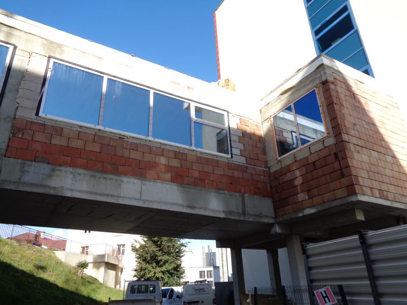 Widok na powstający łącznik pomiędzy budynkami.