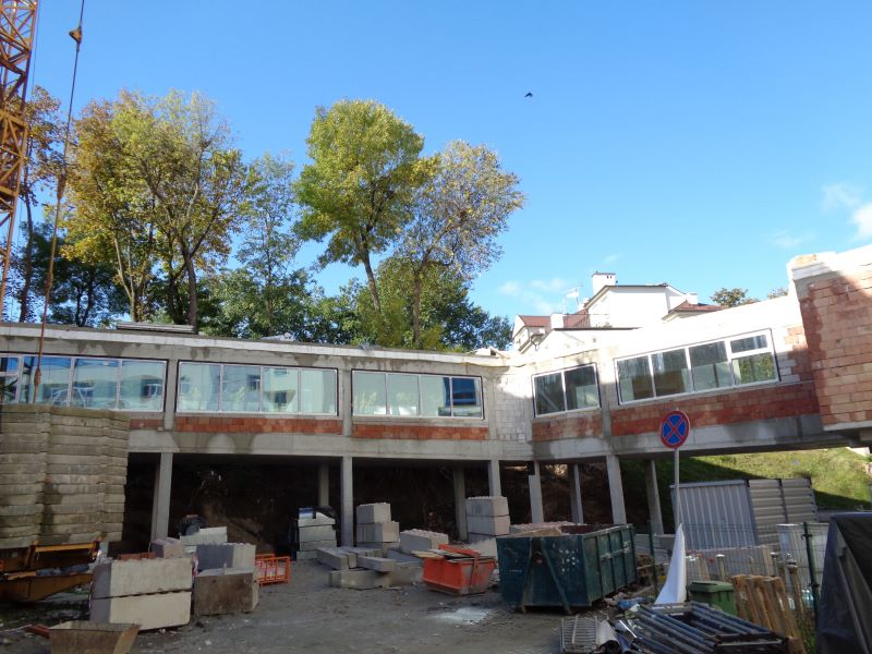 Wykonano konstrukcje żelbetowe na poziomie +1 oraz częściowo na poziomie +2. Początkowy etap prac związanych z wykonaniem ścian działowych oraz tynkowaniem i licowaniem ścian. Cząstkowe wykonanie instalacji elektrycznych i niskoprądowych oraz wentylacji. Demontaż części konstrukcji stropu.