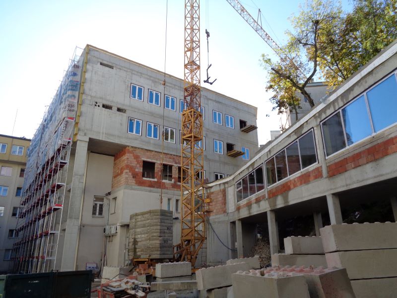 Prace budowlane przy budowie Pawilonu Laboratoryjno Aptecznego