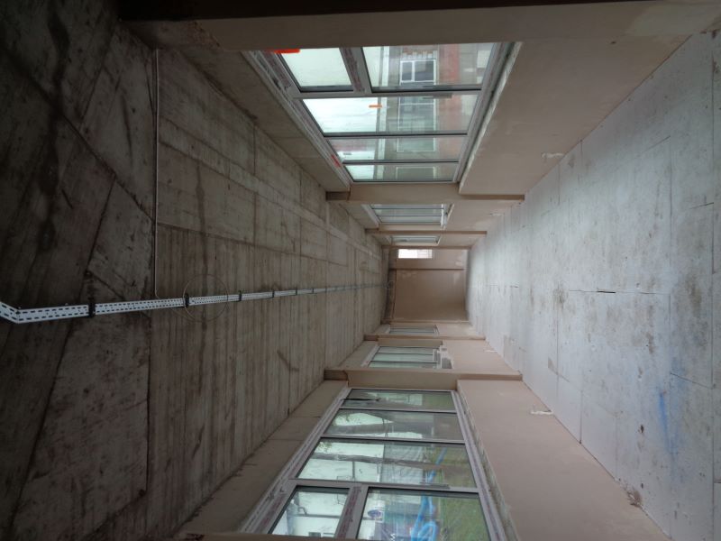 Widok na powstający korytarz między budynkami.
