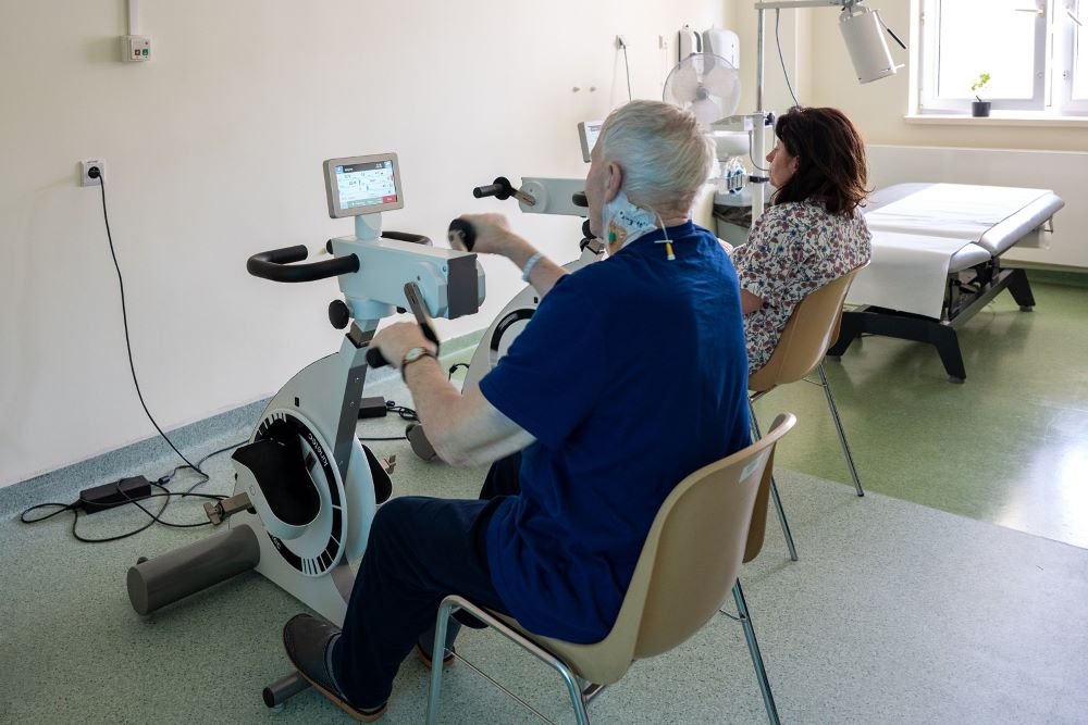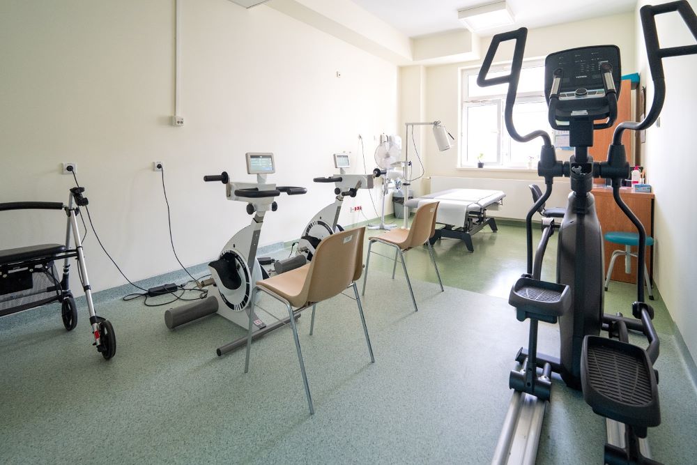 Nowa, doposażona sala rehabilitacyjna ze sprzętem do ćwiczeń dla pacjentów onkologicznych